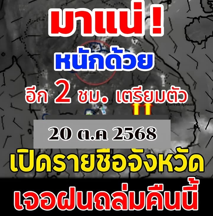 20 ตุลาคม 2568 พยากรณ์อากาศ 24 ชั่วโมงข้างหน้า ภาคใต้มีฝนตกหนักบางแห่ง ส่วนประเทศไทยตอนบนมีฝนน้อย เนื่องจากลมตะวันออกพัดปกคลุมอ่าวไทย ประเทศไทย และทะเลอันดามัน ขอให้ประชาชนบริเวณภาคใต้ระวังอันตรายจากฝนฟ้าคะนอง ฝนตกหนัก และฝนที่ตกสะสม รวมทั้งเพิ่มความระมัดระวังในการสัญจรผ่านบริเวณที่มีน้ำท่วมขังในระยะนี้ไว้ด้วย