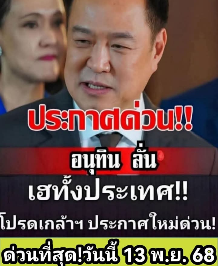 วันที่ 13 พ.ย. 2568 นายอนุทิน ชาญวีรกูล นายกรัฐมนตรี ได้กล่าวเกี่ยวกับสถานการณ์ชายแดนไทยกัมพูชาในตอนนี้ ระบุว่า เมื่อวานที่ประชุม สมช.ได้มีการประเมินสถานการณ์ วันนี้เราลงนามในปฏิญญา แต่ปฏิญญาผู้ที่ลงนามกับเราไม่ปฏิบัติ ในเมื่อไม่ปฏิบัติ ตนก็ไม่รู้จะเปรียบเทียบอย่างไรตนก็ต้องร้องเพลง my way อย่างตน อย่างพี่เล็ก พี่หยอย พี่ปู จะมานั่งโต๊ะก็ตะขิดตะขวงใจกันมันไม่ได้แล้ว เพราะ 4 ข้อหลัก 4 ข้อ คุณไม่ทำแต่เราทำ เราทำทุกข้อเราต้องการให้เกิดสันติภาพโดยเร็วที่สุด แต่เมื่อคุณไม่ทำ แล้วจะกลับมาทำใหม่ไม่ได้
