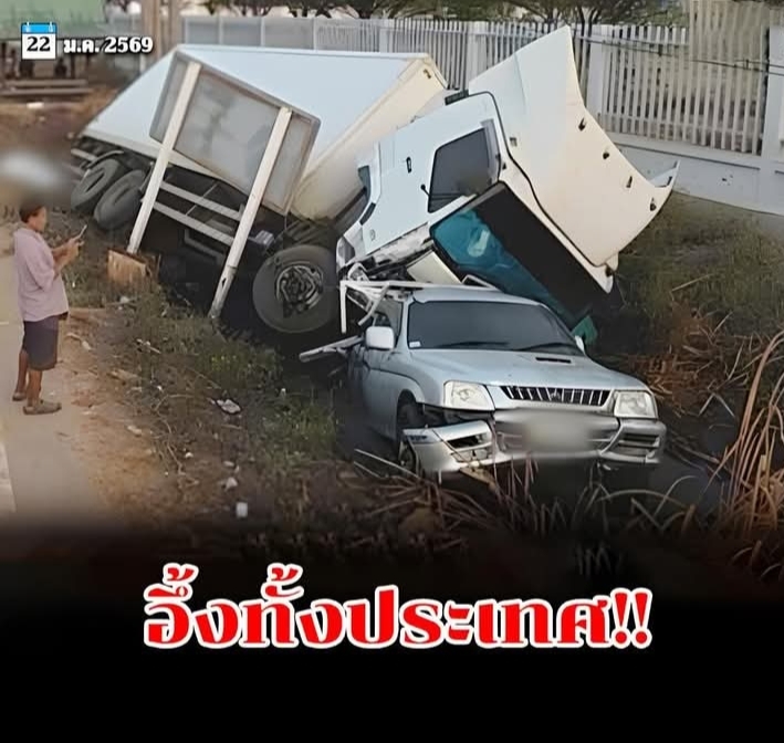 ขณะนั้นได้มีรถบรรทุกสิบล้อตู้ทึบ สีขาว ทะเบียน 64-437 กรุงเทพมหานคร ขับโดย นายบันชา อายุ 43 ปี เกิดเสียหลักพุ่งชนท้ายรถกระบะอย่างแรง ส่งผลให้รถกระบะกระเด็นตกถนนลงไปในร่องน้ำริมทาง กระทะน้ำมันและข้าวของเครื่องใช้กระจัดกระจายไปคนละทิศละทาง รถกระบะได้รับความเสียหายอย่างหนักและถูกรถบรรทุกทับอยู่ภายในร่องน้ำ ส่วนร่างของผู้เสียชีวิตกระเด็นตกจากรถ เสียชีวิตอยู่ริมถนน