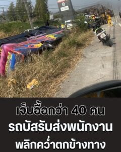 สุดระทึก! รถบัสรับส่งพนักงาน เสียหลักพลิกคว่ำตกข้างทาง บาดเจ็บอื้อกว่า 40 คน… ดูเพิ่มเติม