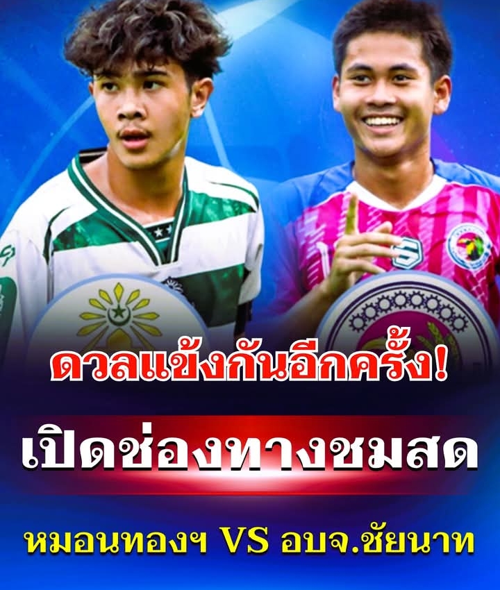 มาแล้ว! ช่องทางชมสด หมอนทองวิทยา ดวลแข้ง อบจ.ชัยนาท รีแมตช์คู่ชิงในตำนาน เย็นนี้