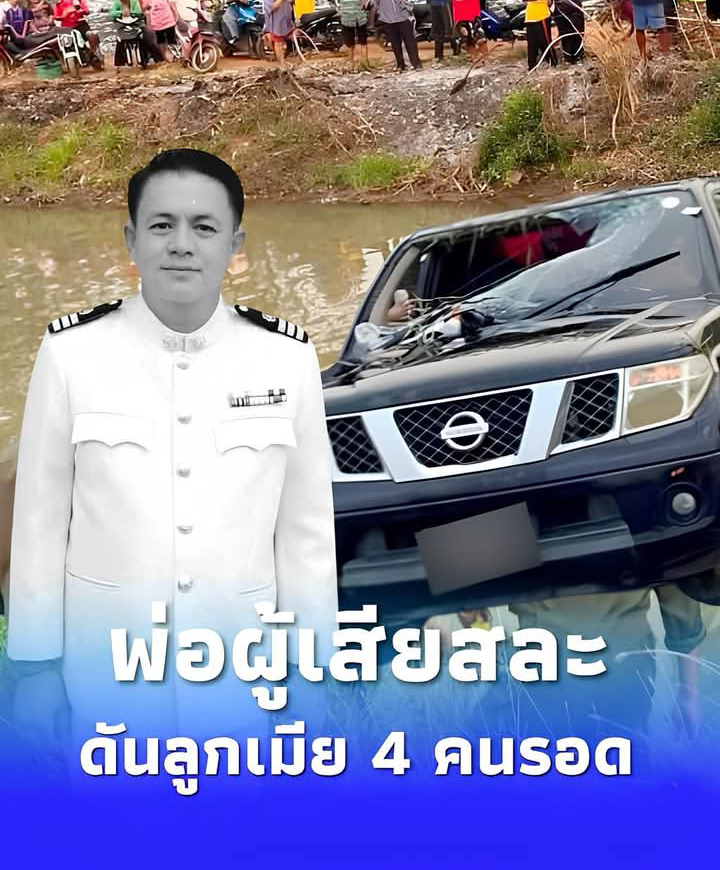 สุดอาลัย ผู้ช่วยผู้ใหญ่บ้าน พ่อผู้เสียสละ ดันลูกเมีย 4 คนพ้นน้ำรอด ตัวเองยอมดับ หลังถูกเก๋งขับตัดหน้ารถจนหักหลบตกคลอง